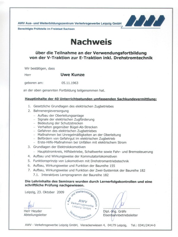 Zeugnisse von Uwe Kunze